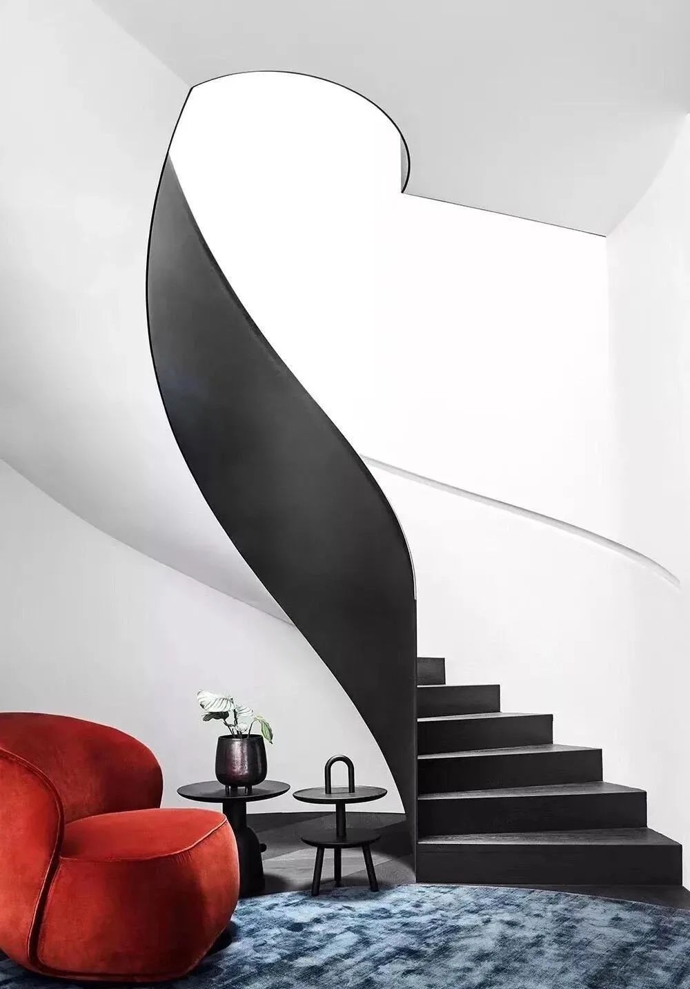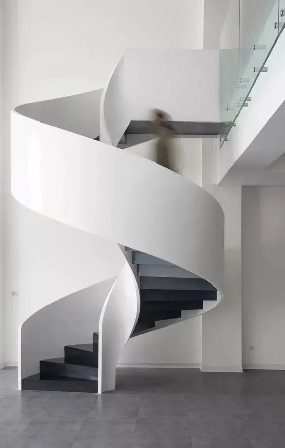 說超樓梯界的顏值擔當,不得不提的就是"旋轉(zhuǎn)樓梯"。作為空間連通的樞紐,靈動朝選、宛若舞動著的紐帶