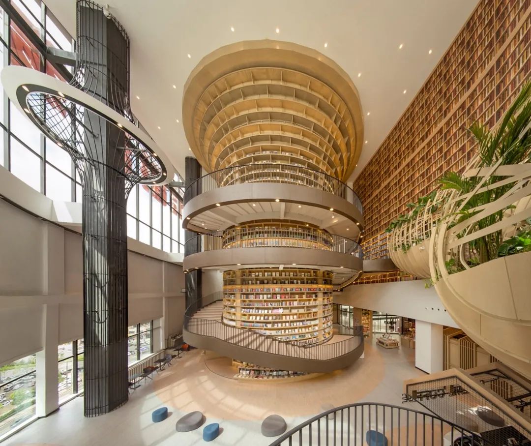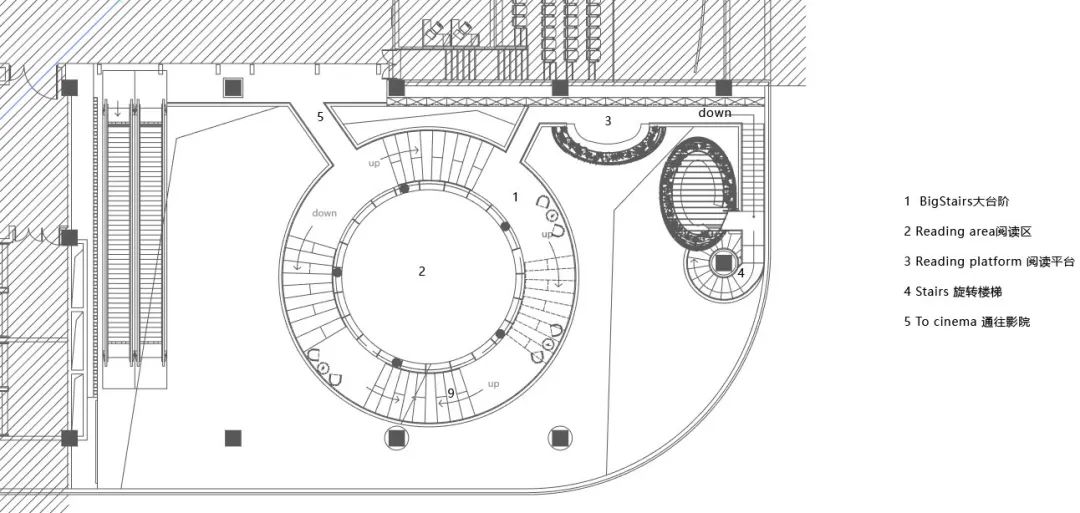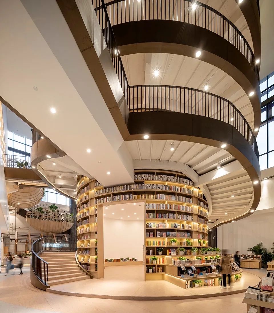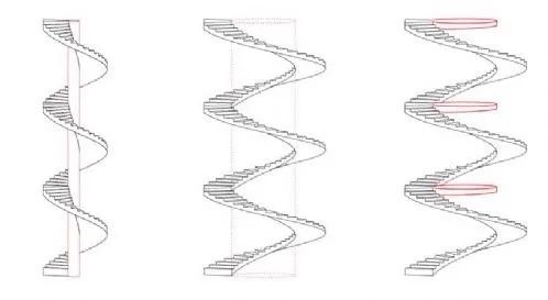平面是以中心立柱為圓心的同心園,外形呈螺旋型三維空間曲線